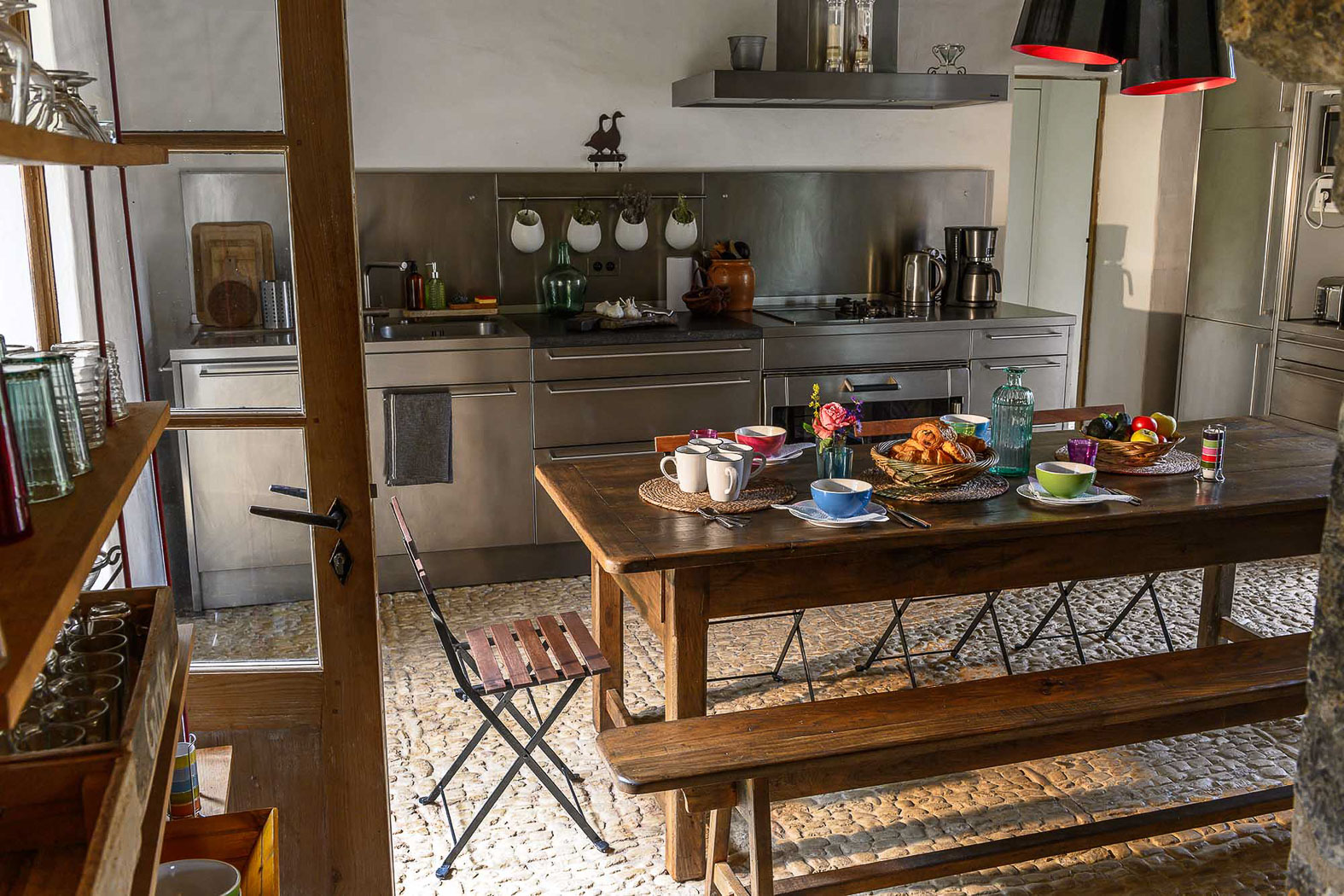 This is not a kitchen for show. With its five-burner range, professional-grade equipment and stainless-steel finishes, it is made for long, convivial cooking sessions, perhaps with produce from Sarlat’s market or a truffle acquired quietly from a local contact. Meals spill outside, eaten under the stars, accompanied by the low crackle of the brasero and the slow rhythm of the countryside after dark.