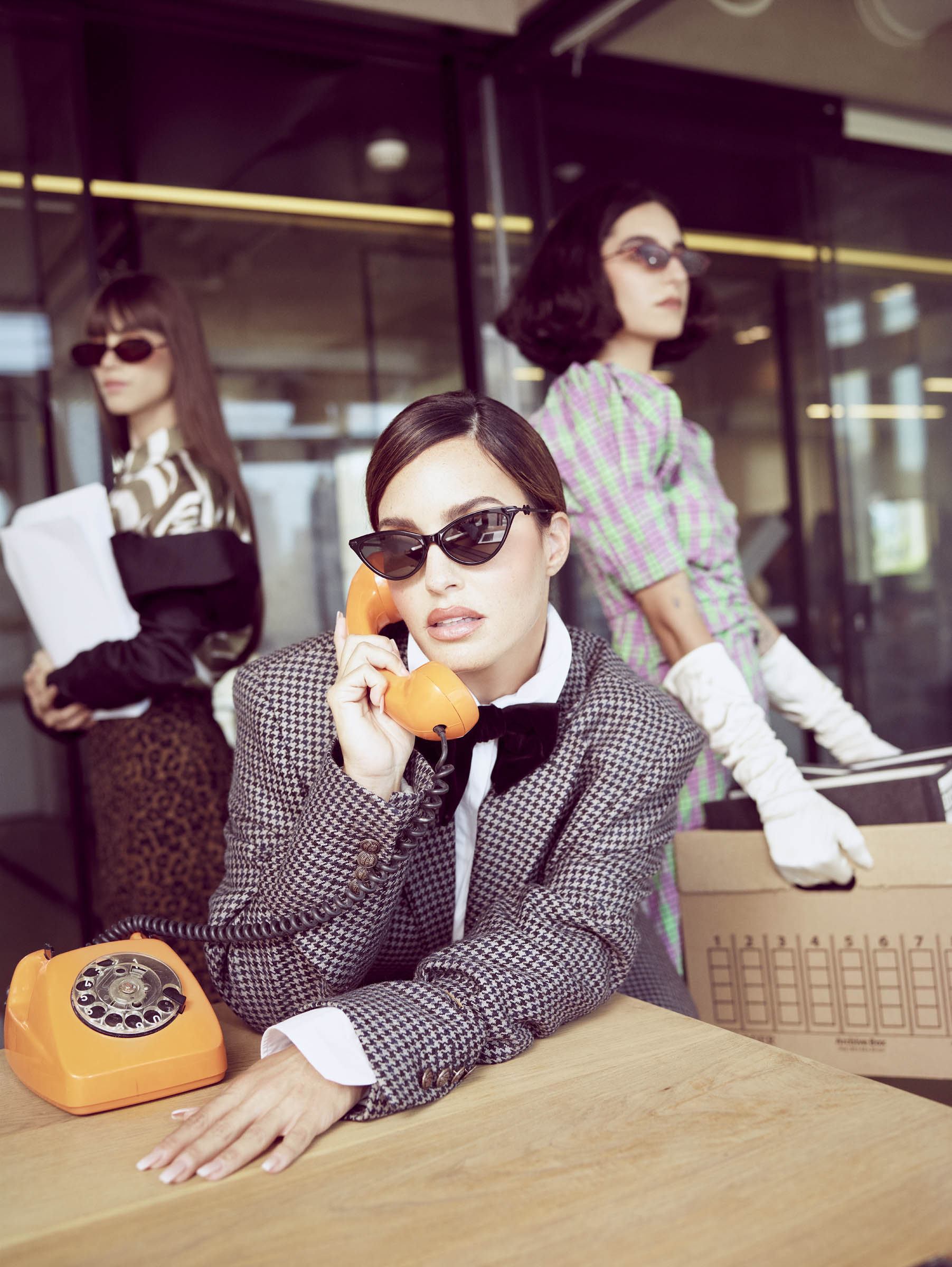 Shot against a retro office scenography, Karen Wazen is joined by two working women while sporting the latest eyewear – Olivia, Carolyn and Kourt. This season continues to demonstrate the namesake label’s committed relationship with timeless frames that are equally of-the-moment and suited for everyone’s style sense.