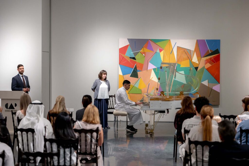 The next day, the orchestra’s pianist held a master class for students of the College of Basic Education at the Contemporary Art Platform, Kuwait’s modern art museum. The participants were four students from the class of composer and associate professor Abdullah Khalaf, a well-known Kuwaiti musician, conductor, and composer.