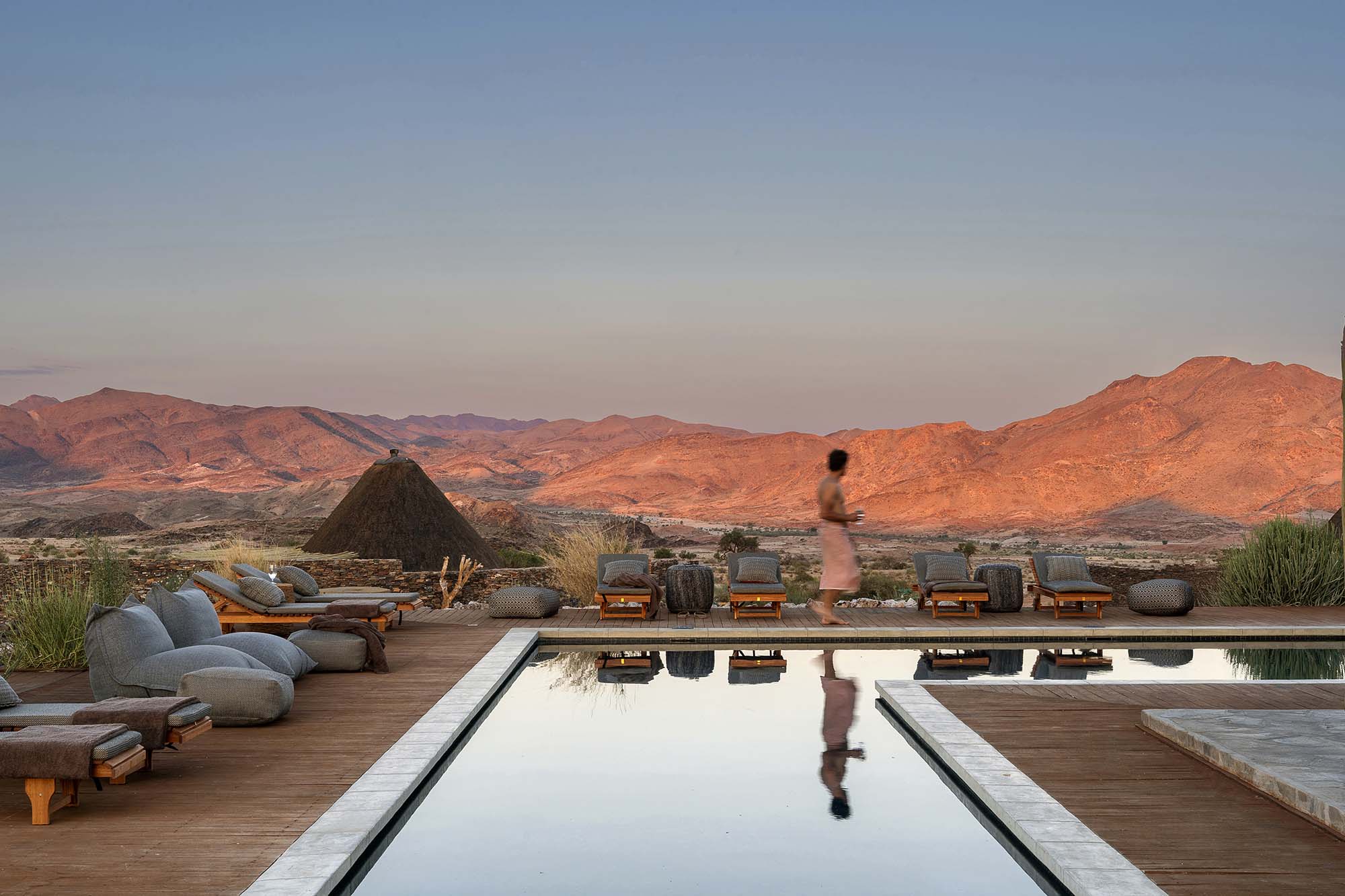 The lodge itself is available exclusively for private use, accommodating up to 18 guests across five suites, each designed with private outdoor living spaces and star beds. For those seeking even greater seclusion, the Lost Poet Villa sits alone on a remote hilltop, offering uninterrupted 360-degree views across mountains and desert plains. Built using locally sourced materials and guided by eco-conscious principles, both lodge and villa blend quietly into their surroundings. There are no neighbouring properties, no intrusive infrastructure, and no light pollution only dark skies and a silence so complete it becomes a presence in its own right.