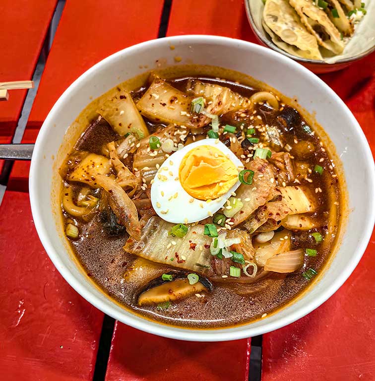 For our final savoury dish, the Kimchi Udon Noodles delivered warmth and substance. Thick udon noodles absorbed the sharp, fermented depth of kimchi beautifully, while shiitake mushrooms introduced an earthy note and boiled egg added richness. This was perhaps the most comforting dish of the evening, generous, balanced and ideal for those who appreciate bold flavour without excessive heaviness.