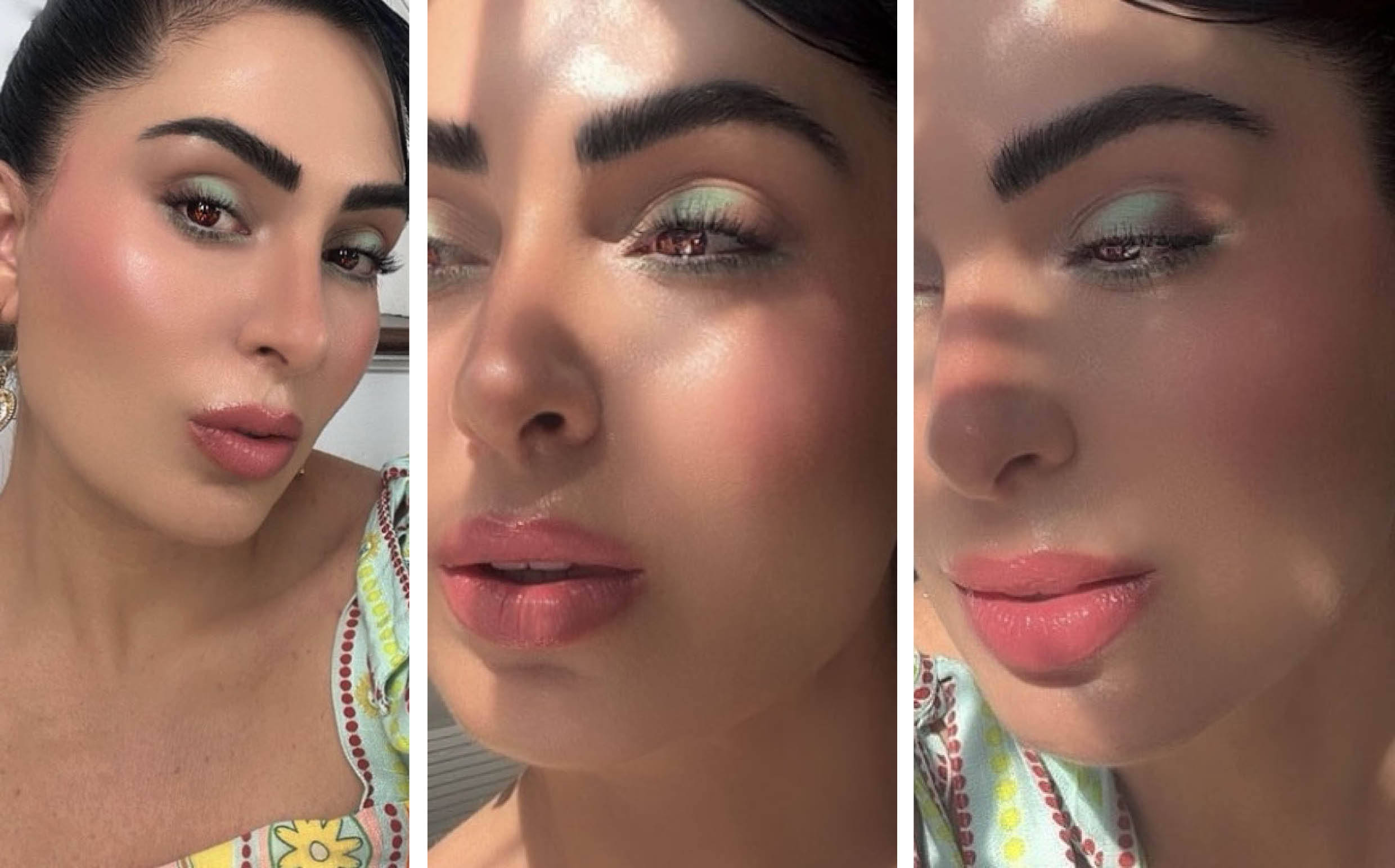 Mint eyeshadow for that cool, dreamy vibe, paired with rosy pink blush and lips to keep it sweet and flirty, It’s giving spring goddess energy with just the right pop of color.