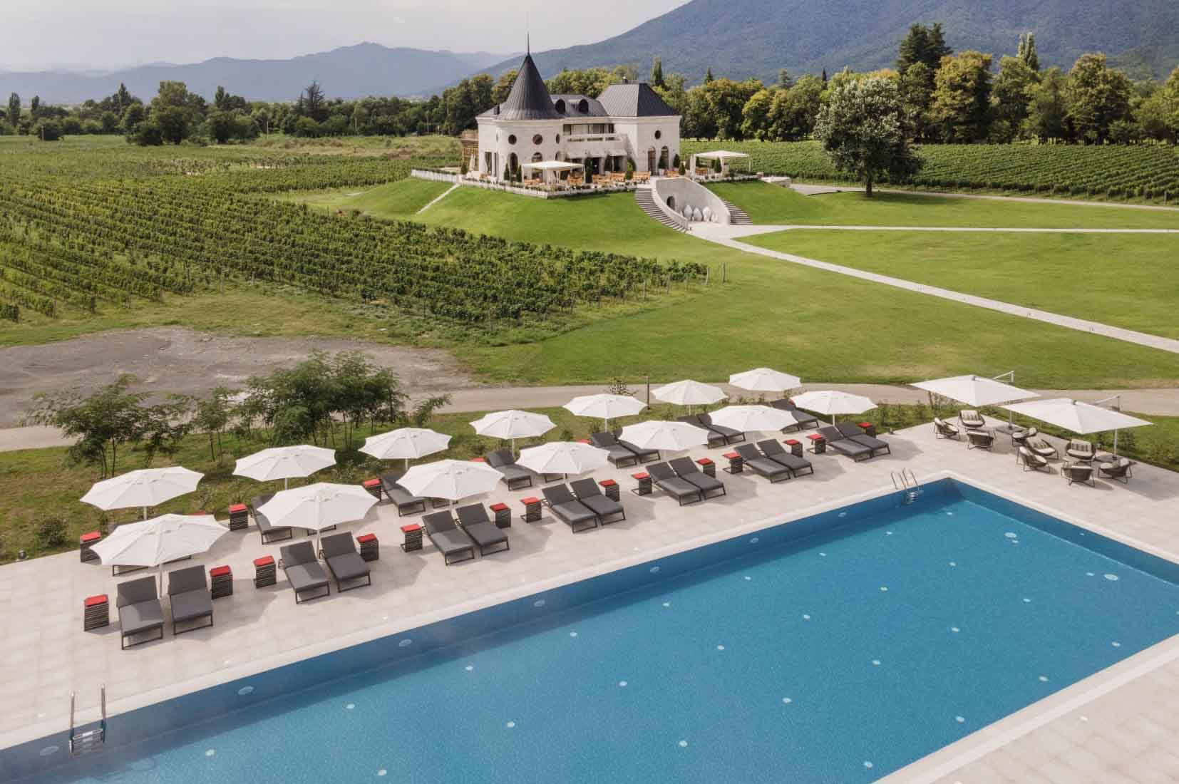 There are places where the landscape quietly dictates the pace of life. Lopota Lake Resort & Spa, tucked into the foothills of the Caucasus Mountains in eastern Georgia, is one of them. The drive from Tbilisi takes just over two hours, yet the transition feels far greater. As the road begins to climb and wind through forested hills and farmland, the air shifts, the horizon expands, and the sense of arrival is marked not by a grand entrance but by the slow reveal of water, vineyards and mountains layered one behind the other.