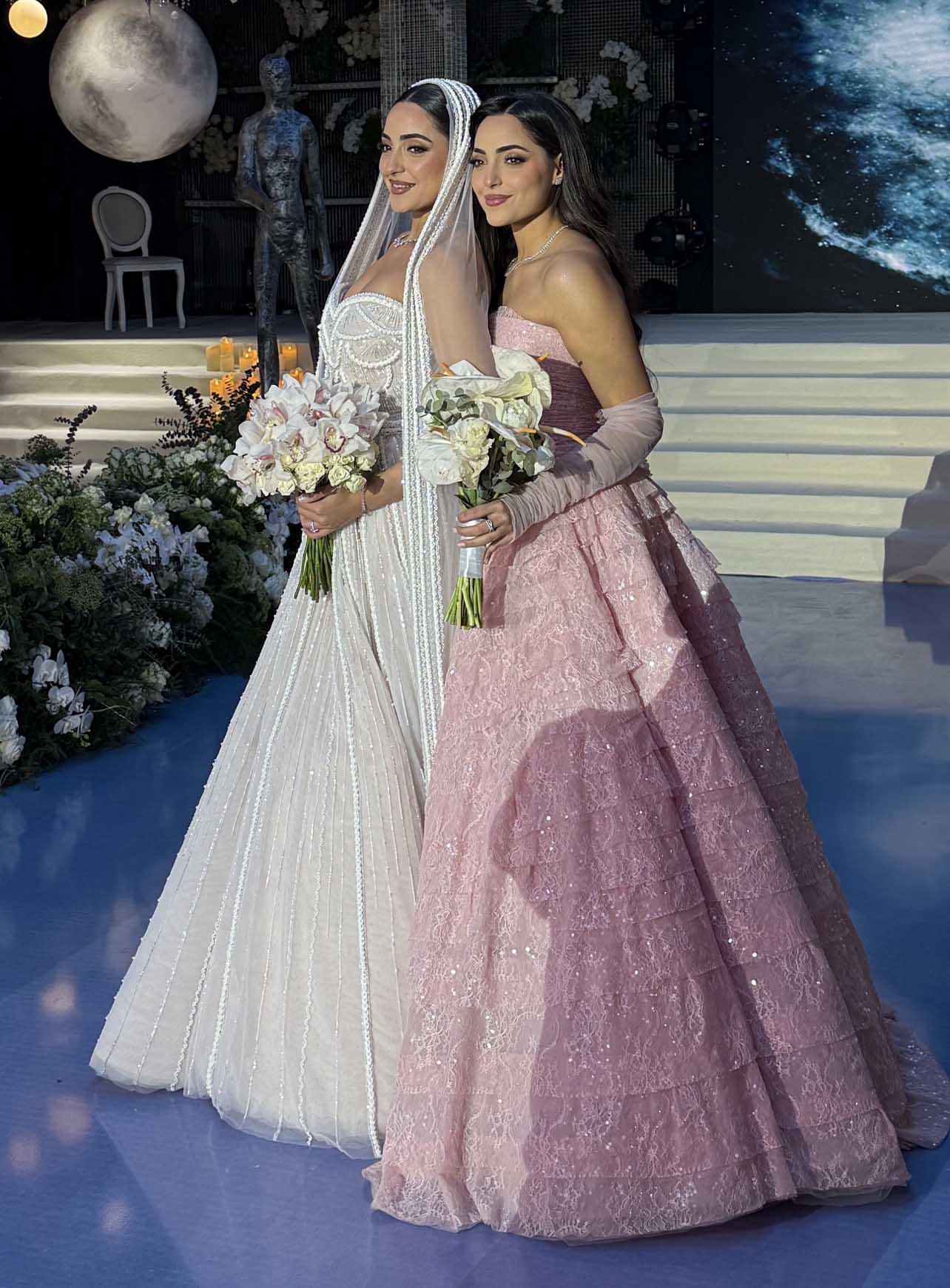 Together, they’ve built TheHallaniTwins as a shared creative platform, documenting their twin journey and life experiences. Rim’s focus lies in storytelling, content strategy, and creative direction, while Rana has recently launched her own couture brand, Rana Hallani, making her debut with her own wedding dress. It’s a milestone that perfectly reflects their shared commitment to supporting each other’s ambitions.