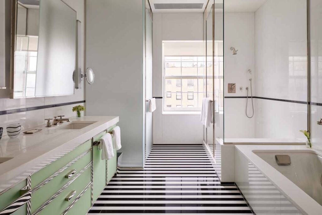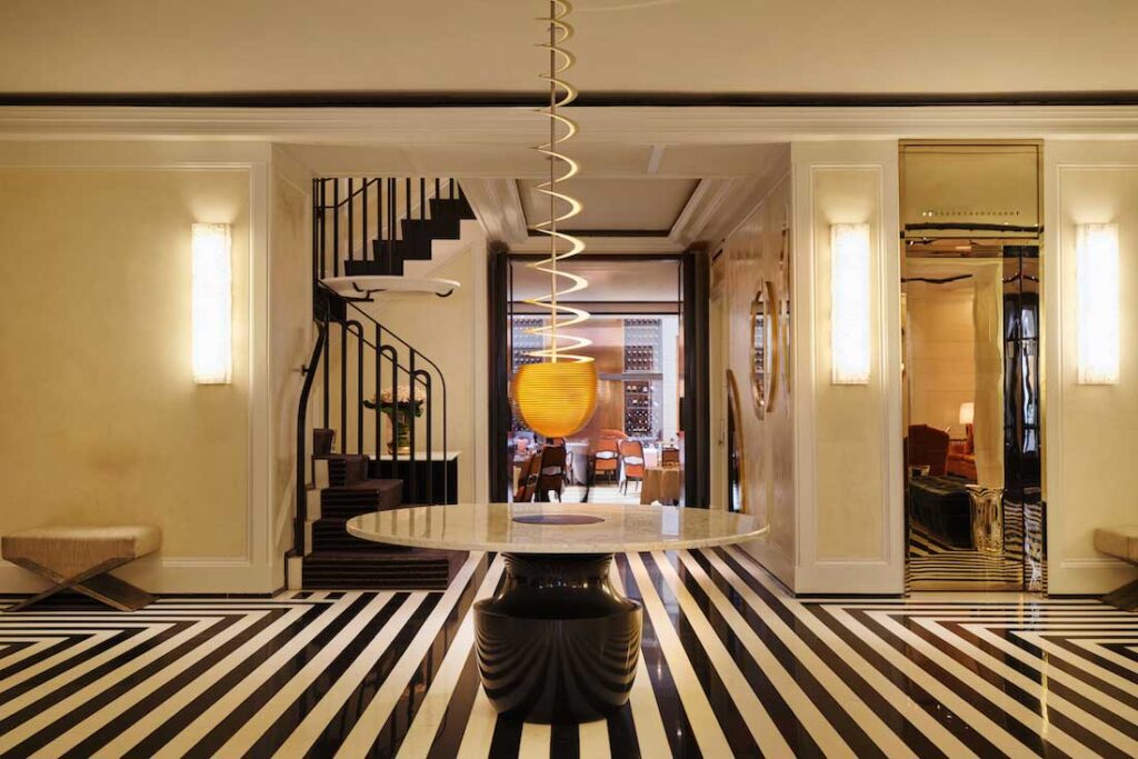 French designer Jacques Grange has masterfully reimagined the 1927 landmark building, weaving in Deco references and European flair. Think sconce-lit walls, mirrored lift doors, and plush velvet lounges under striking abstract art. Despite the Upper East Side’s reputation for conservatism, The Mark’s interiors are bold, sexy, and surprisingly fun.