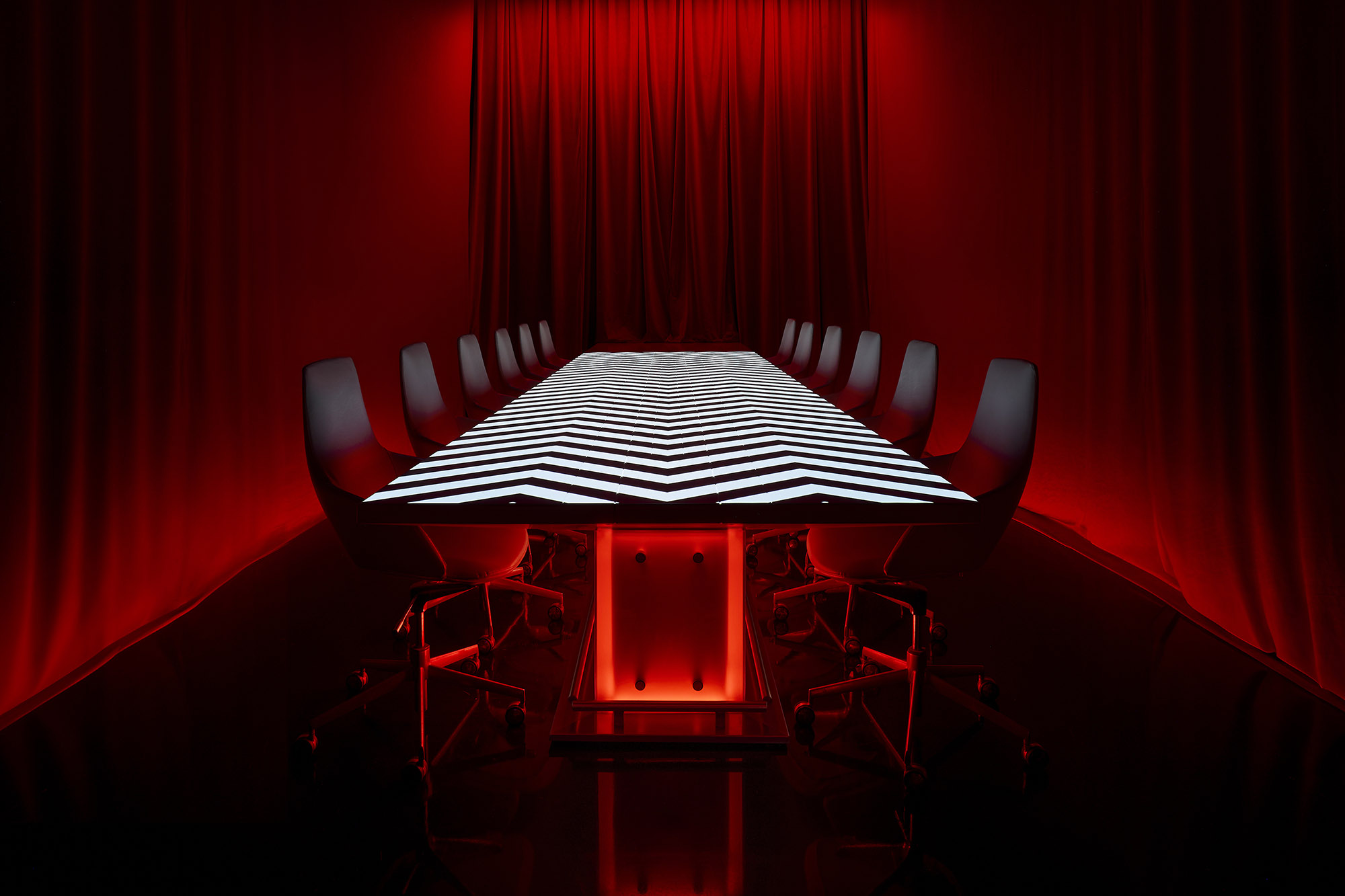 As the doors open, the transformation begins. What follows are three distinct environments before entering the central performance space. These are not waiting rooms, but immersive chapters that set the emotional tone. Then, the main show begins.